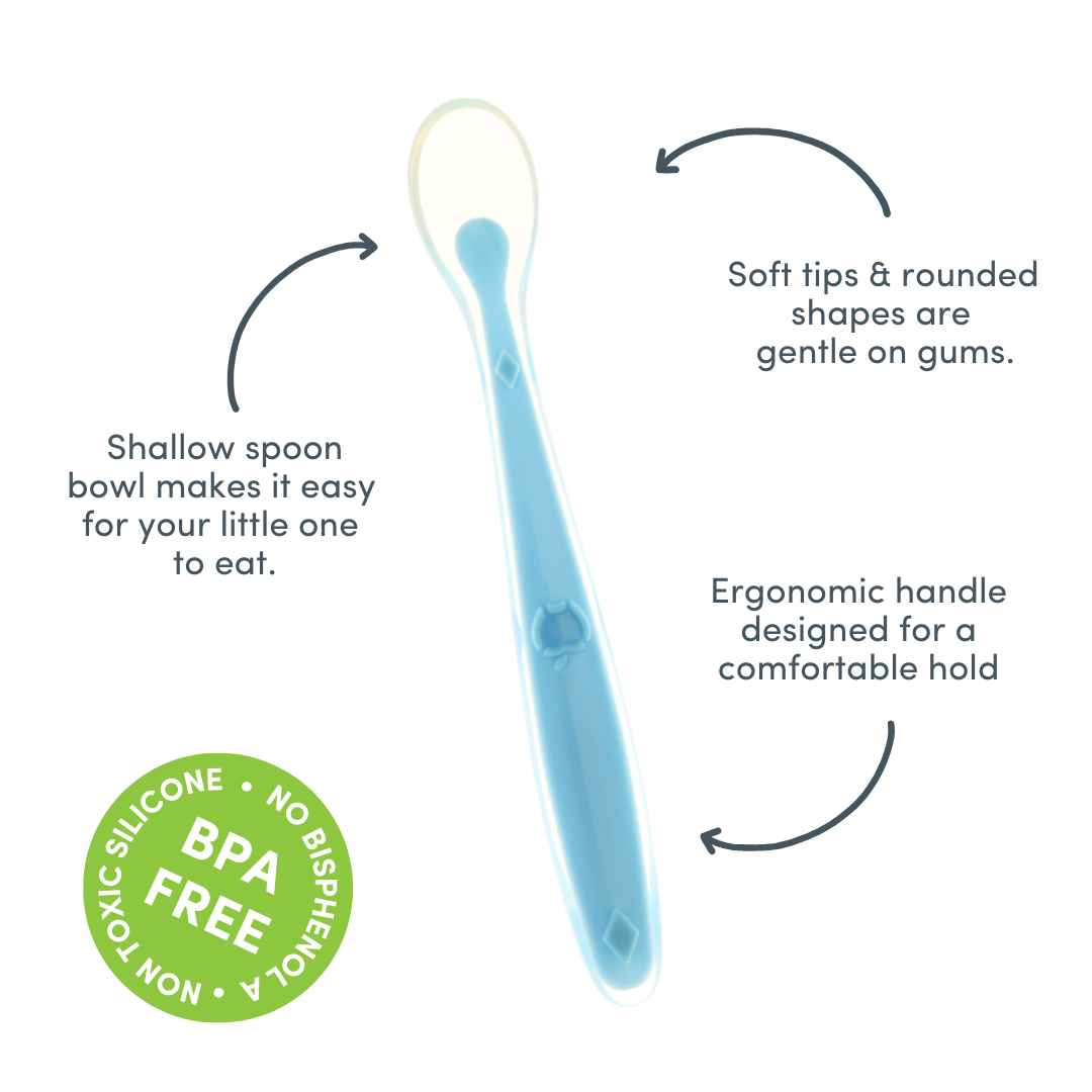 Our Mummy Cooks Soft-Tip Silicone Baby Feeding Spoons are designed for feeding your baby from 4 months. The spoon provides a safe and comfortable option for introducing solid foods. The soft tip and rounded shape is gentle on gums, and the shallow spoon bowl makes it easy for your little one to eat.